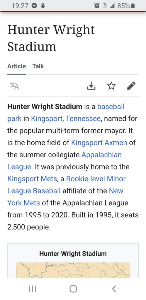 The ballpark is the same one that belongs to the Kingsport entry in the Appalachian League.