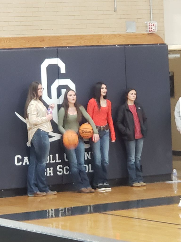 Callie Harris, CC Mitchell, Madison Coleman, Natalie Burress, Raylee Goins and Kenzie Young are our six players suited up and ready to go tonight. Five starters and one substitute will make up the rotation.