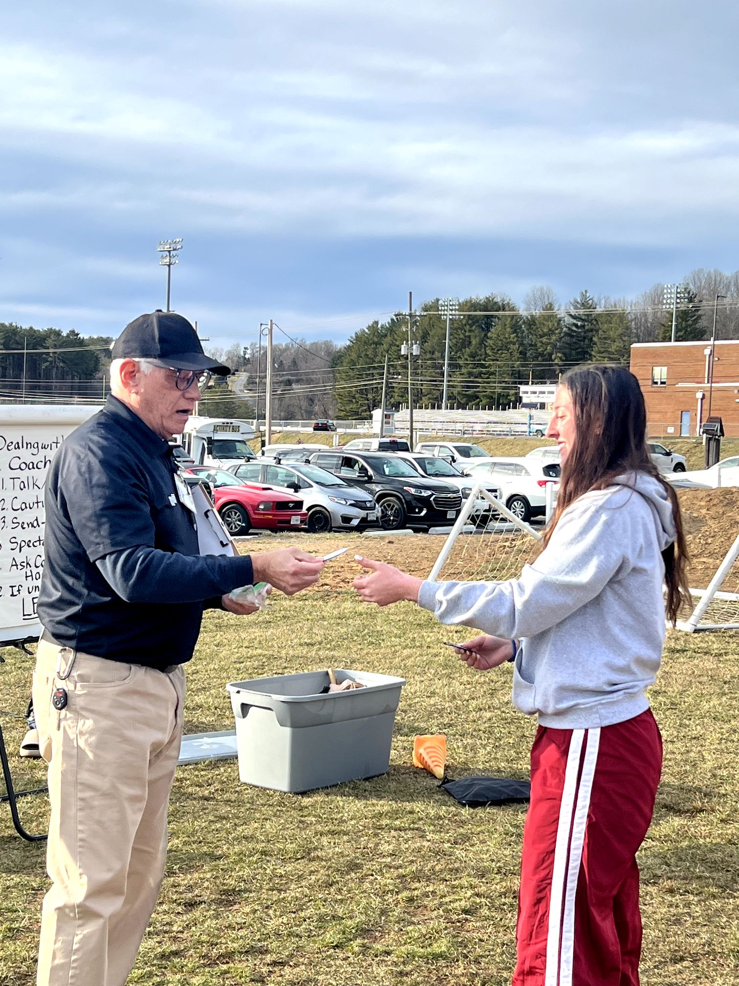 Travis Leath and daughter Madison after the two finished up a volunteer practice at Cavalier Park.