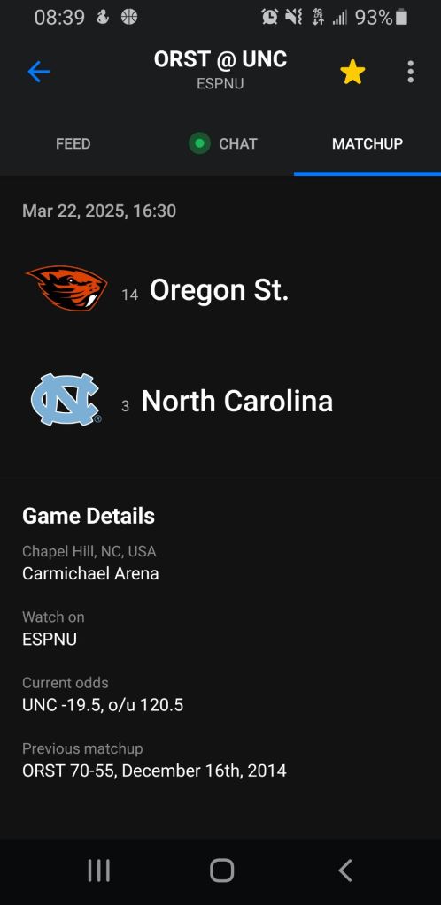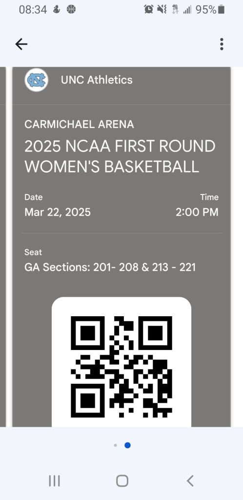 Today is Day 2 for the Women and Day 3 for the Men. While it would be easy to watch TV games, we will head down the road to Chapel Hill for the Tar Heels double header. The games are set to begin at 2:00 pm.