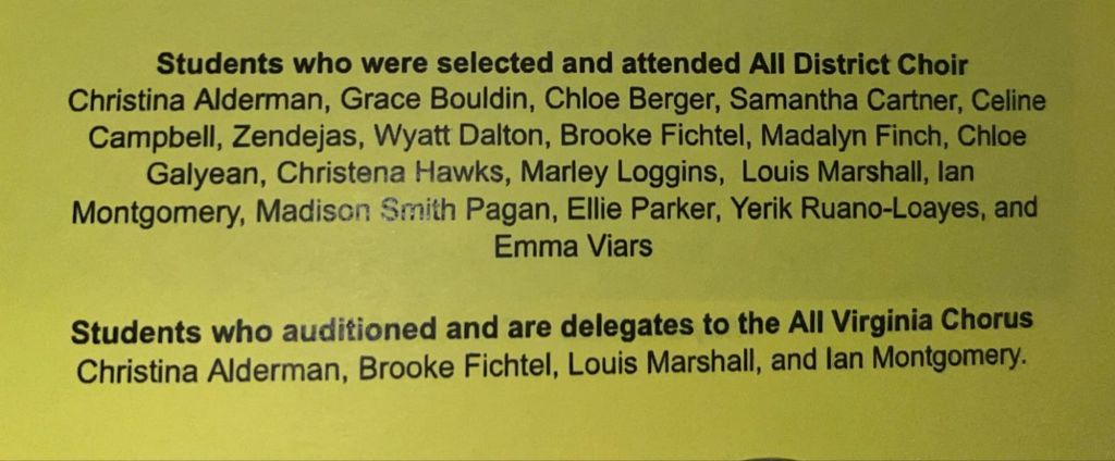 CCPSD is very represented tonight, Superintendent Burnette and Principal Burnette are here as well. I love seeing these faces here supporting! 🩵🩶🤍Many soloists tonight, but I’m slightly partial to one in particular, Ms. Grace Bouldin.