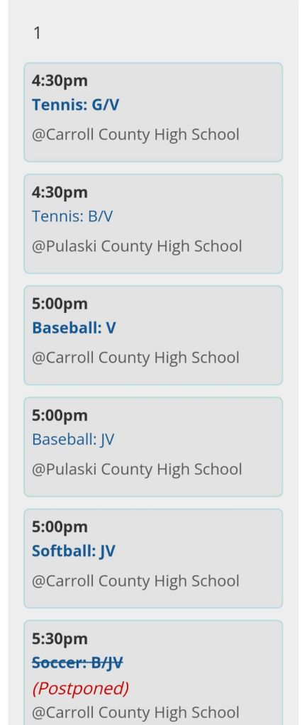 Β Girls π§ Soccer β½οΈ and Track were the four teams not on the original schedule and the 2 Boys Soccer teams will be pushed back on Pulaski County Day.