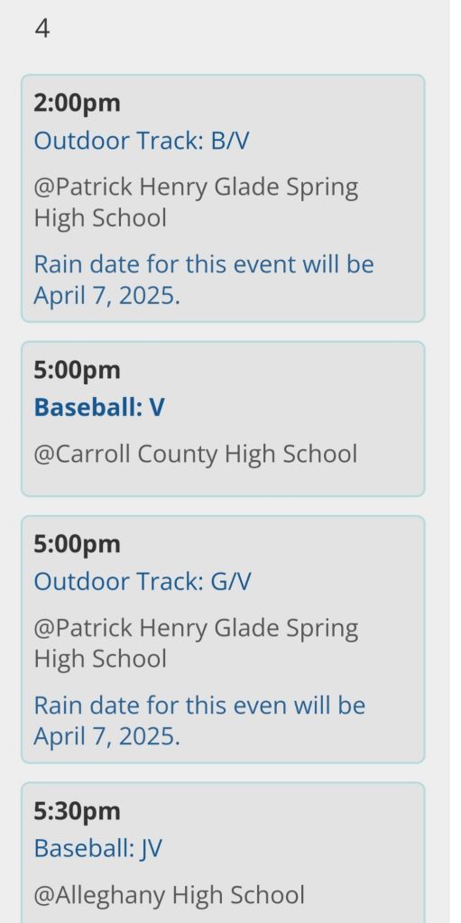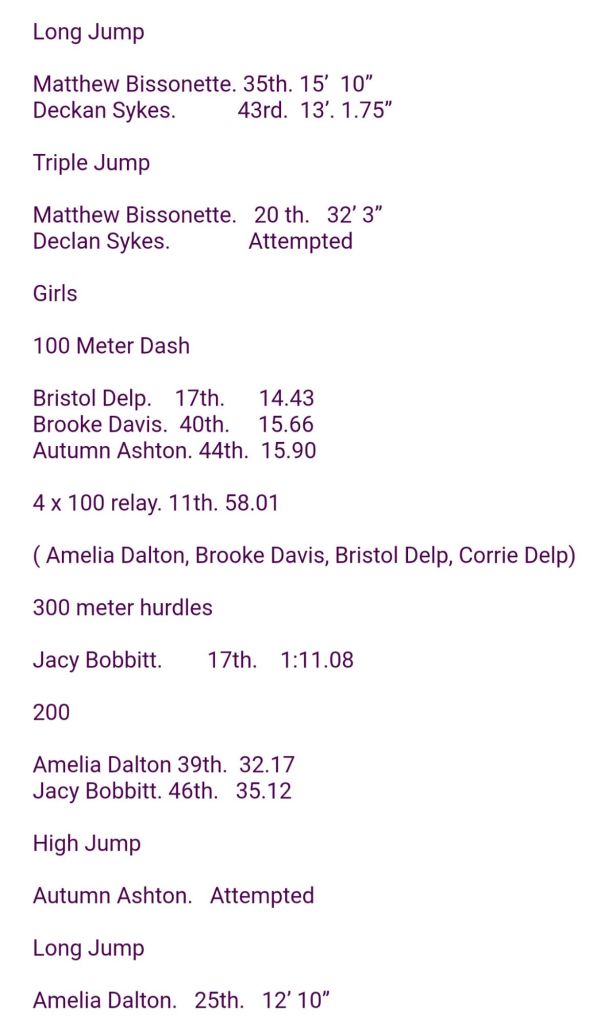 Both of our Track and Field teams competed today at Glade Springs and here is a snapshot from their meet.