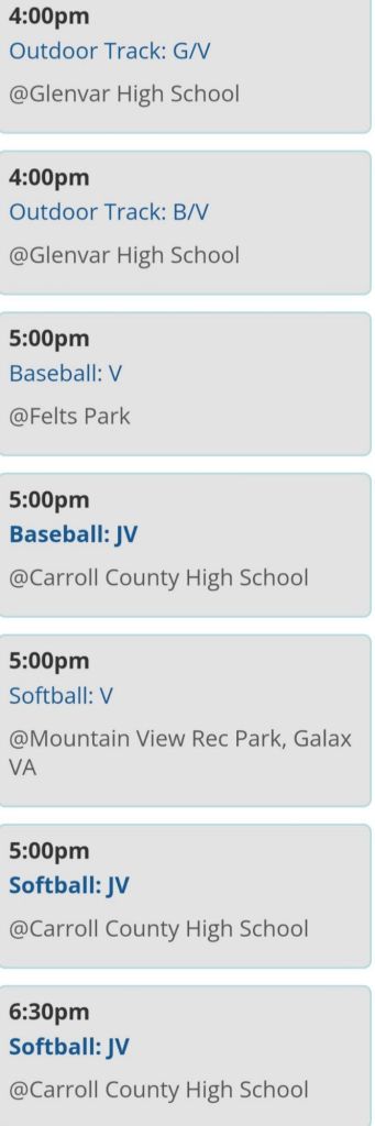 Welcome to Wednesday as our Cavaliers prepare to tangle with Galax and Tazewell β others try to join Corrie Delp for the State Track π£ & Field Meet…