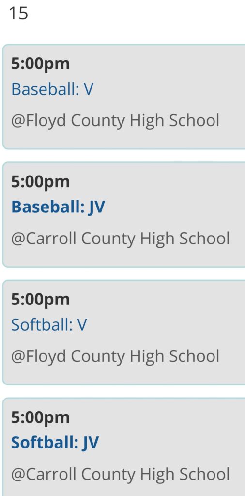 Welcome π to Tuesday ! Floyd County took a 2-1-1 lead Monday night π in the first of two sets of Spring pairings and today will feature all four of our Diamond π teams.