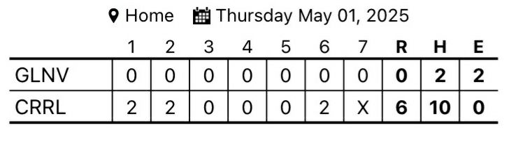 On the mound, the Senior went the distance, allowing just two base hits and one walk while striking out seven Highlanders on the evening.