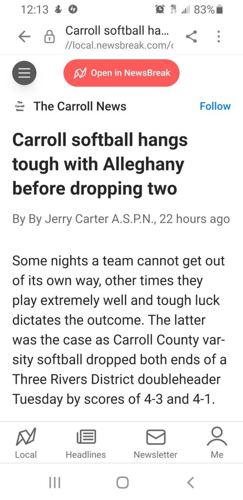 Here is a great example as Carroll County High School Softball team dropped both ends of a doubleheader the other day up in The Highlands versus the Cougars.