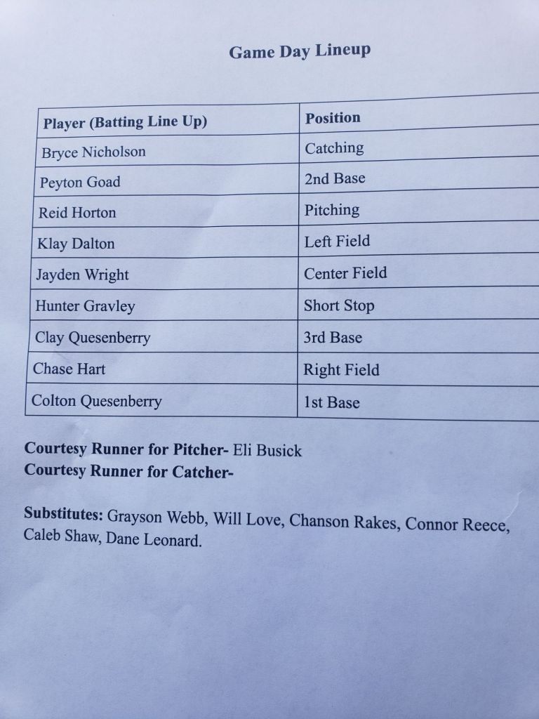 Adam Nester has his lineup card ready for the game with James River High School π«.