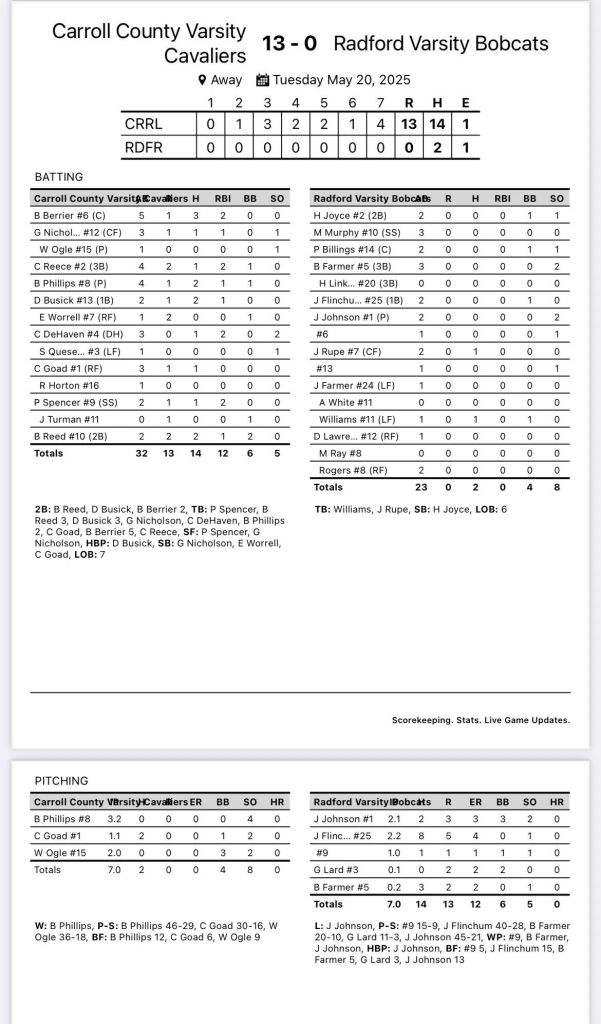 Last but not least, Head Coach Rick Nester and his Lady Cavaliers improved to 7-11 on the season with a 15-0 victory over Radford. Emma Harman pitched a gem π and was backed by three sparkling defensive plays.