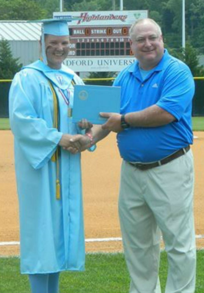 McCoy, now Rachel Clark, and her fellow Seniors received their diplomas with their eye black on their faces while all of their classmates were back home getting theirs in a more traditional fashion. When you add in the fact that Rachel was the Class Valedictorian, it adds another layer to the story.