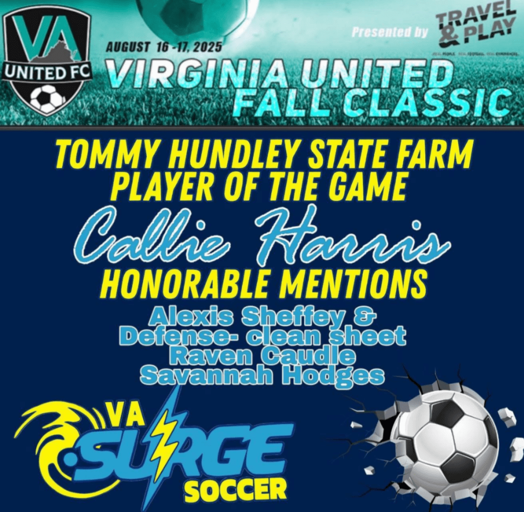 While Marion Harris is busy refereeing every game he can up there, he’s still sending us updates on the Surge Soccer team that has a trio of Lady Cavaliers on the roster. Chloe Wright, Alexis Sheffey and Callie Harris.