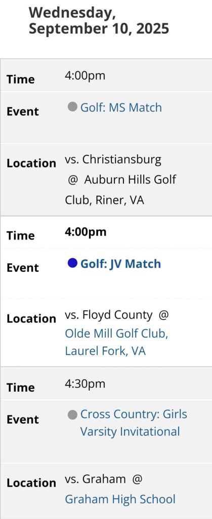 Busy, Busy Wednesday on tap for the Cavalier Nation ! 7 contests all told, 2 Golf β³, 2 Cross Country, 2 Volleyball π and JV Football π.