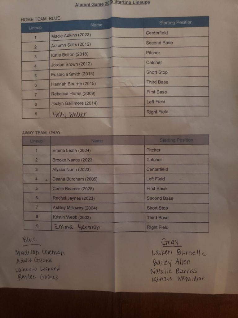 You will notice that 10 members of the current Lady Cavaliers were part of the game itself. I think that only Brooke Webb and Arizona Thompson were missing from the list of returning players.
