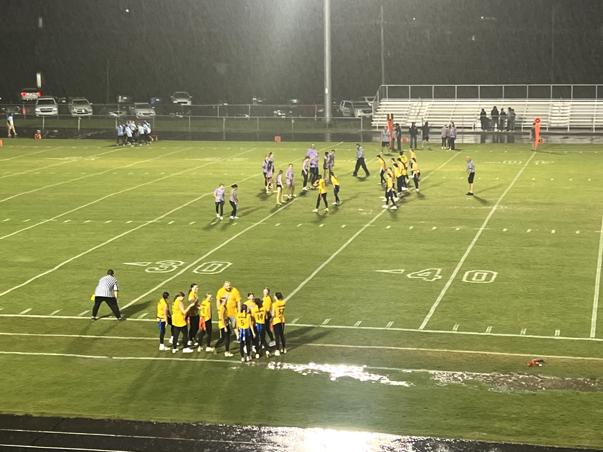 The weather cooperated right up until it was time for the Rick Nester led Junior team needed to warm up for their part of the Powder Puff πππ game.
