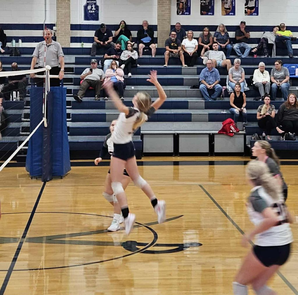 In the closeout set it was Scarlett Dalton with four straight points at the line to give CCHS a 7-2 lead in the chase to 15. The teams finished up 8-8 and Carroll County won π15-10 !