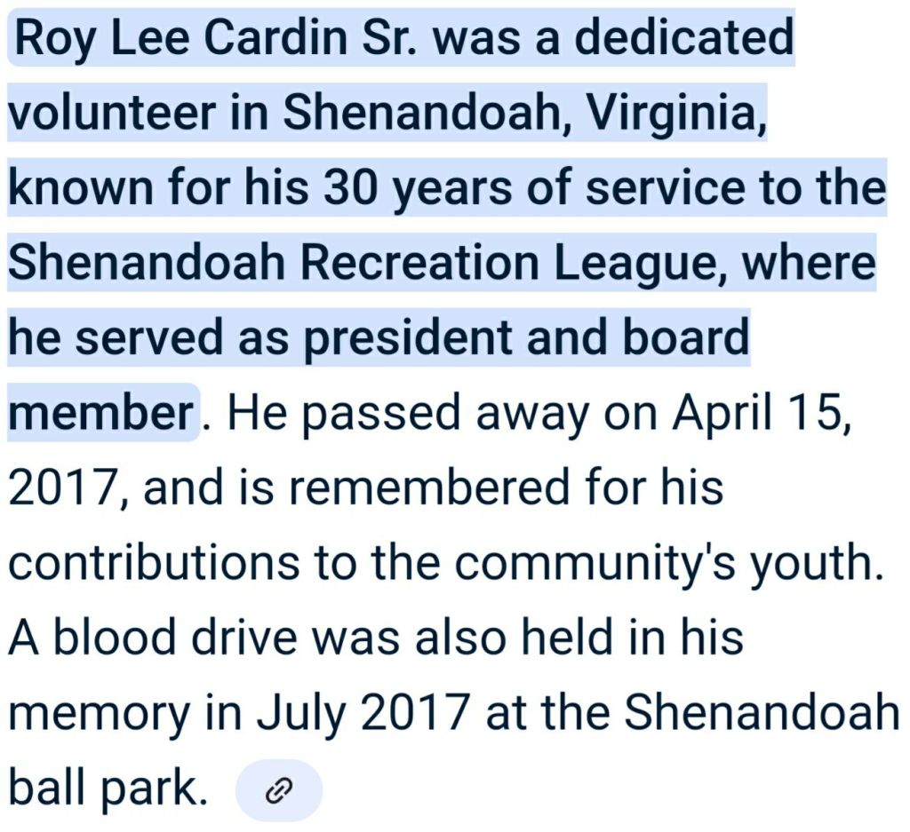There’s a youth ballpark in the town of Shenandoah that will forever have Roy’s name on it. Field #2 will remind every child learning the game today, that the facility is named after a Kind, Kind Man that touched the lives of thousands.