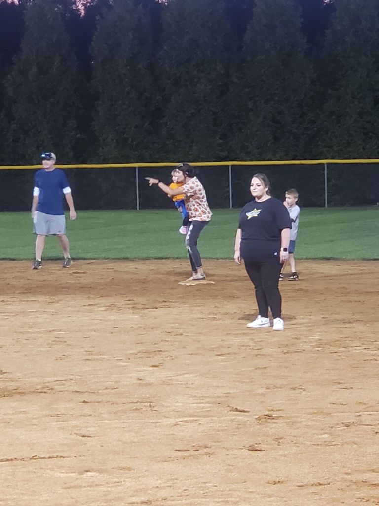 Head Coach Rick Nester decided to turn his annual Father – Daughter Softball game into a fun game of Kickball using the same format. Junior Varsity Coach Terry Warf and Assistant Varsity Coach Travis Leath were also enjoying their roles as Co – Hosts.