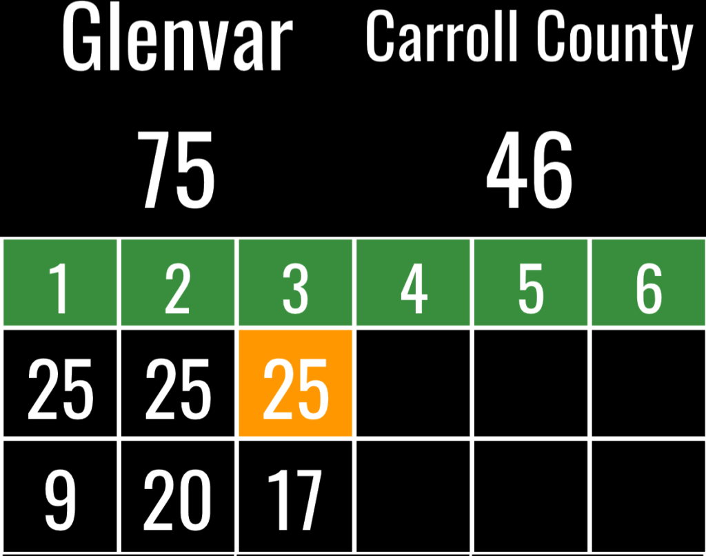 Against the Highlanders, Carroll County looked a bit out of sorts in the opening set and the score reflected it as Glenvar rolled to a 25-9 victory.