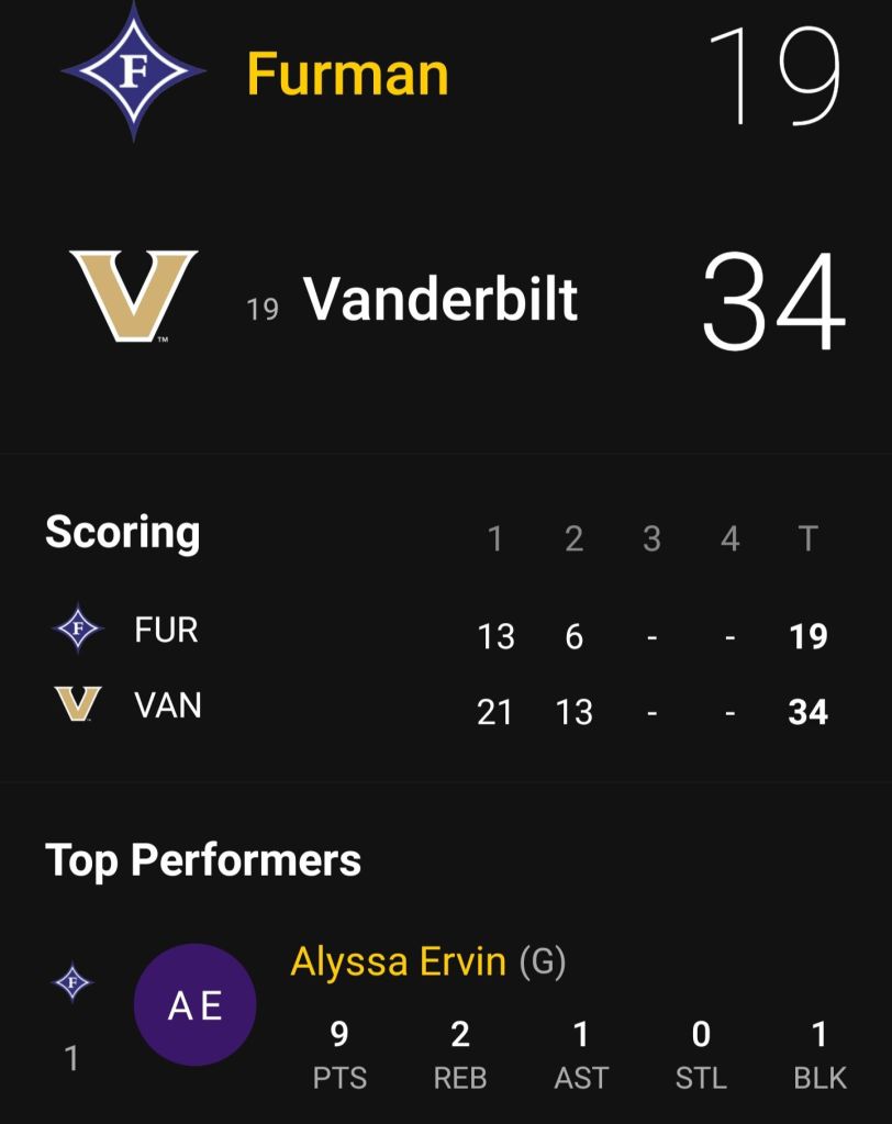 Final : Vanderbilt 96, Furman 48 but our Lady π© Cavalier had herself a night π