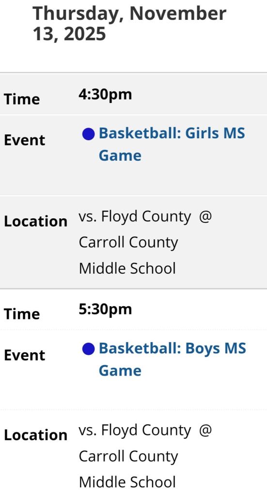 Thursday, November 13th will include a Goldielocks game for Alyssa Ervin and for the 11th time in 18 days, Middle School Hoops ! βž• the Smoot Brothers visit Lin’s Alma mater…
