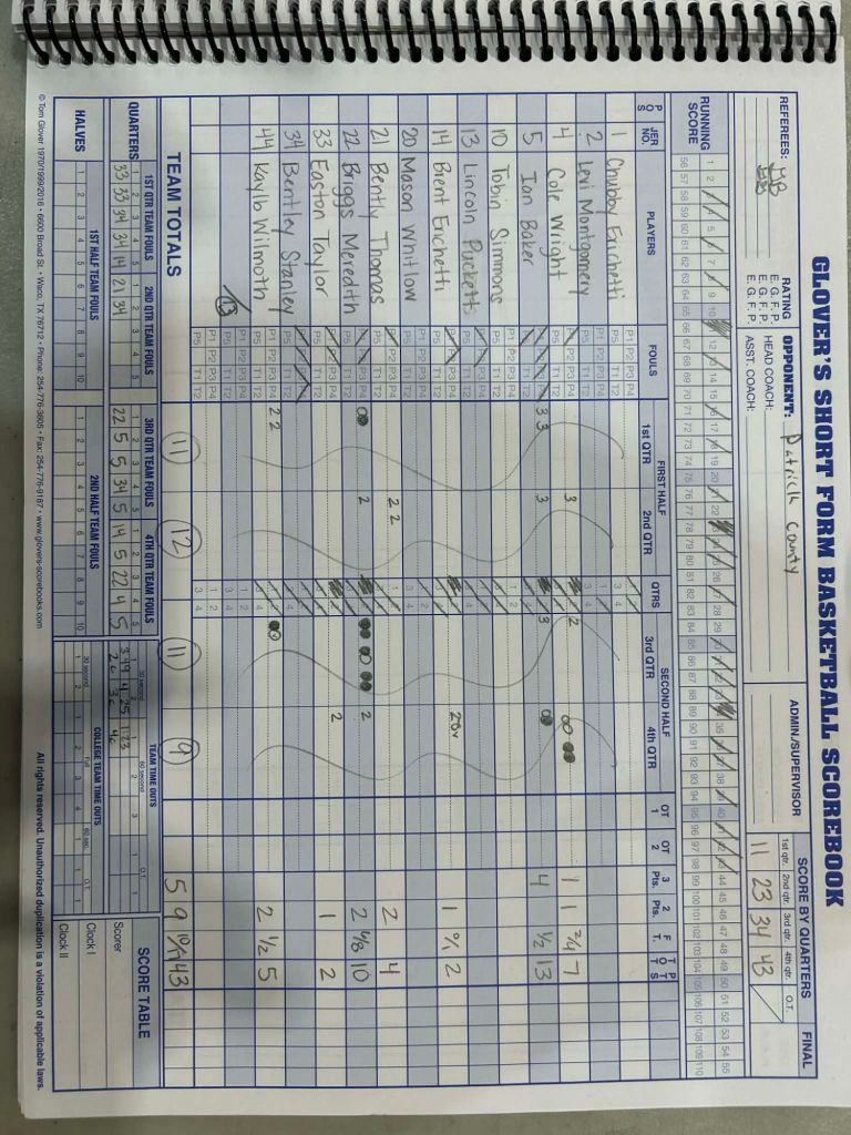 Cavaliers : Sam Johnson 15, Caleb Hill 11, Trenton Poe 6, Bryce Jackson 1. (33)