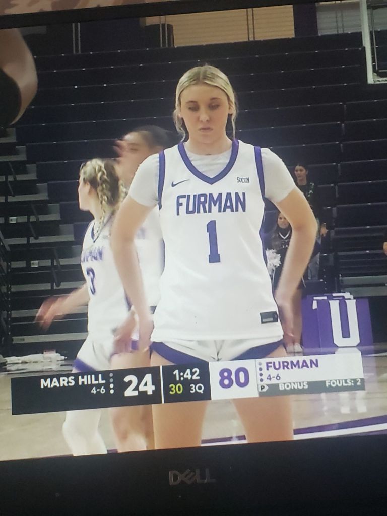 Furman University Sophomore and former Lady π© Cavalier, Alyssa Ervin was in the starting lineup today and she wasted no time in taking advantage of the new found opportunities !
