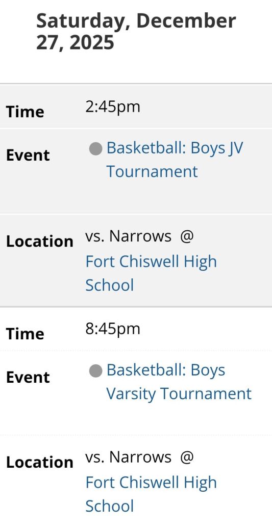 Fort Chiswell, Virginia – Carroll County High School is set to join host Fort Chiswell and six other local Schools for three days of non – stop Basketball π beginning today and continuing on Monday and Tuesday.