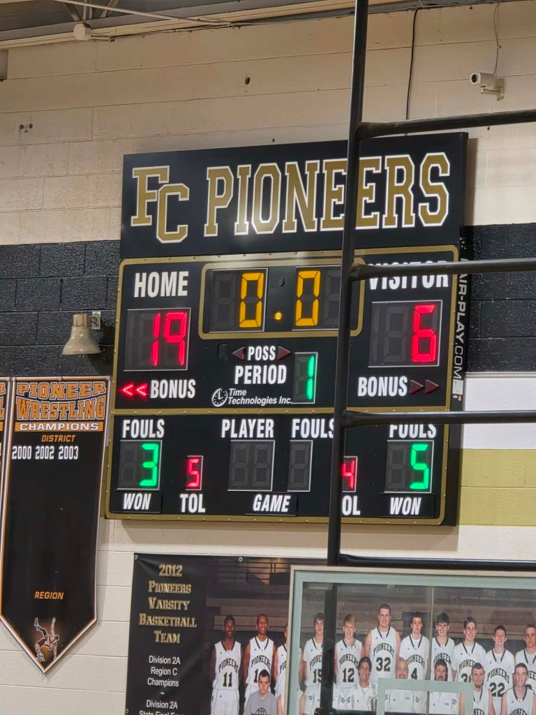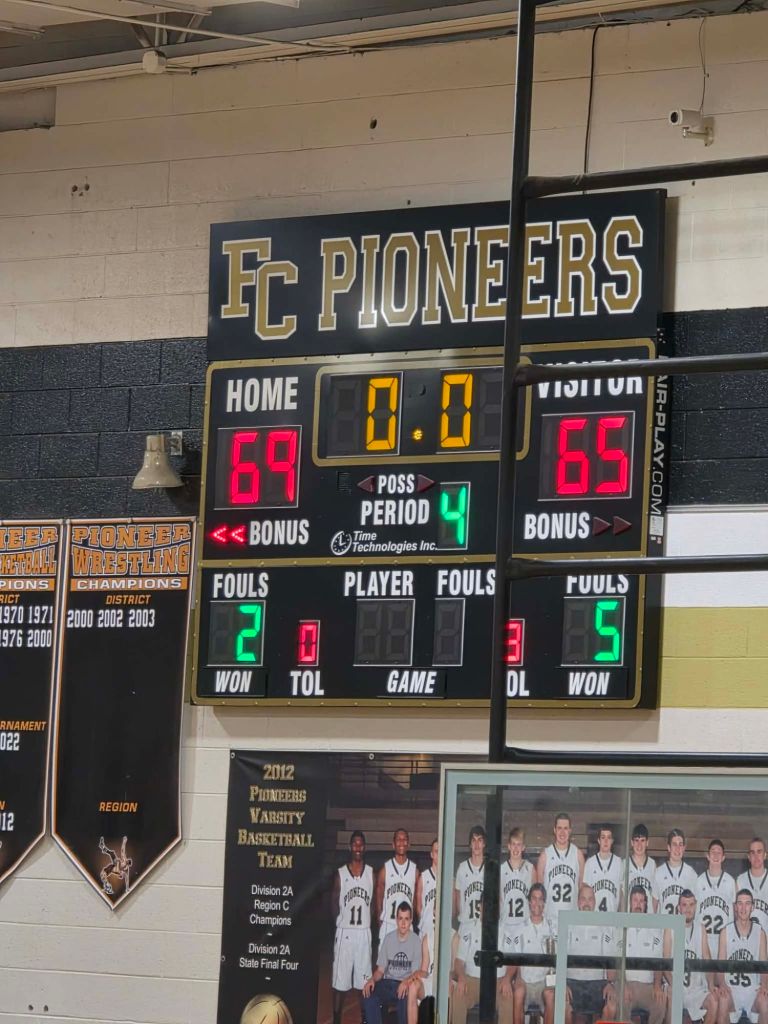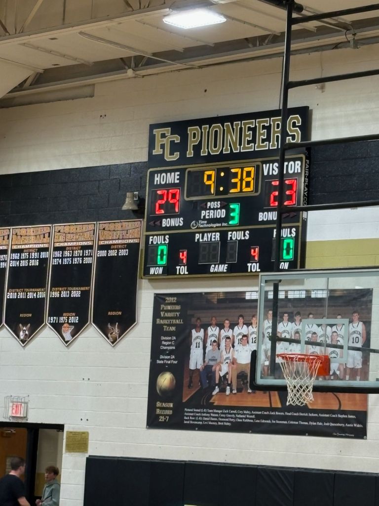 Fort leads 76 – 60 after a slow start for the Pioneers. Nice crowd on hand β and we should start just before 9pm.