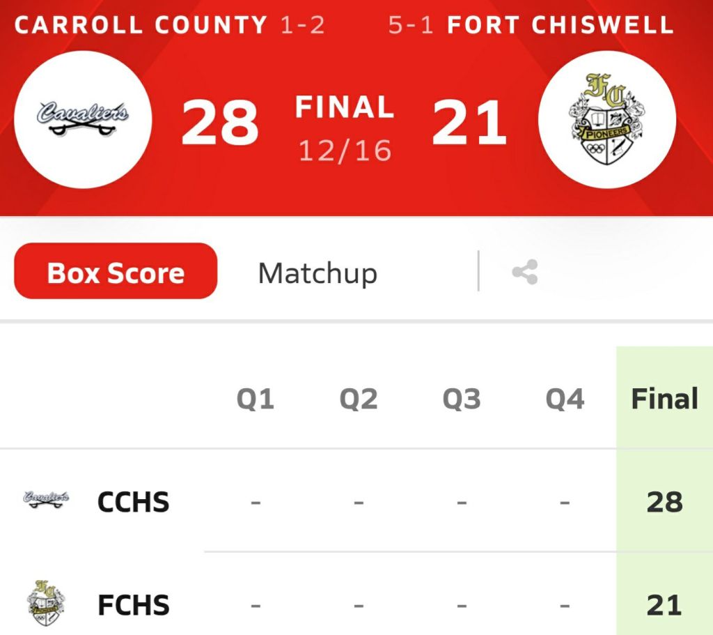 The defensive effort in the first half kept Carroll County in the contest as the teams headed to the lockeroom tied at 10 -10 but Fort was able to pull away over the final 12 minutes of play.