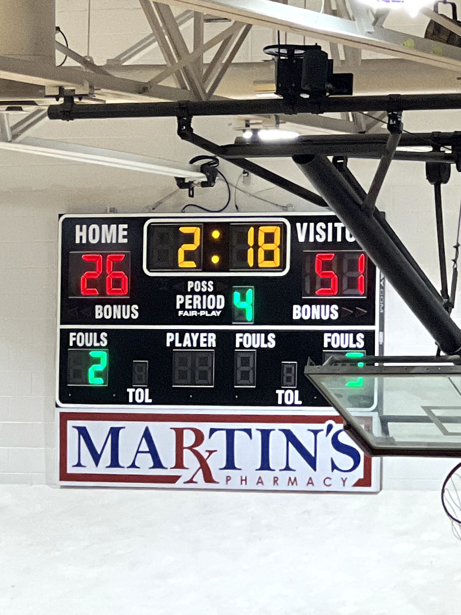 The shot of the scoreboard came courtesy of Bill Gallimore as another long time fan had made the drive over. It reflects the fact that Ervin once again hit the clutch basket π§Ί to give her team the lead and after a defensive stop β, the victory !!!