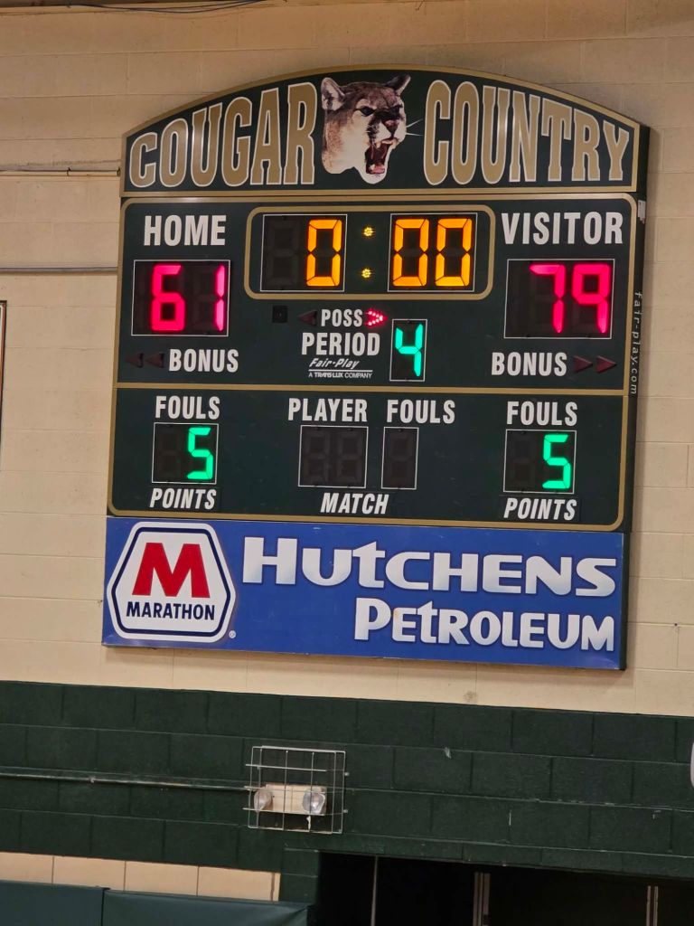 The shot of the scoreboard came courtesy of Bill Gallimore as another long time fan had made the drive over. It reflects the fact that Ervin once again hit the clutch basket π§Ί to give her team the lead and after a defensive stop β, the victory !!!