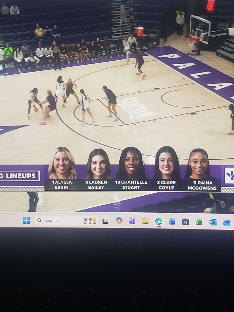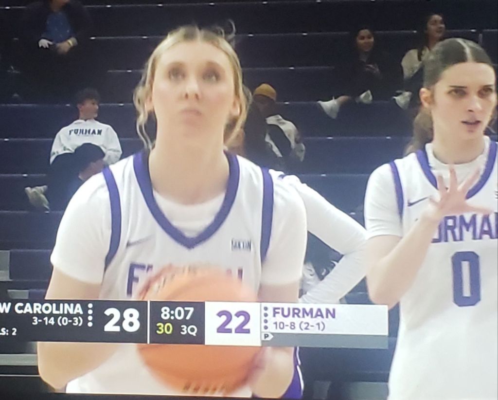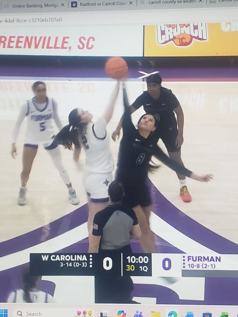 Furman lead 12 – 11 after the first quarter with Alyssa scoring 5 points on 2/4 shooting β 1/1 FT. Add 1 rebound and 1 steal along with forcing a jump ball.