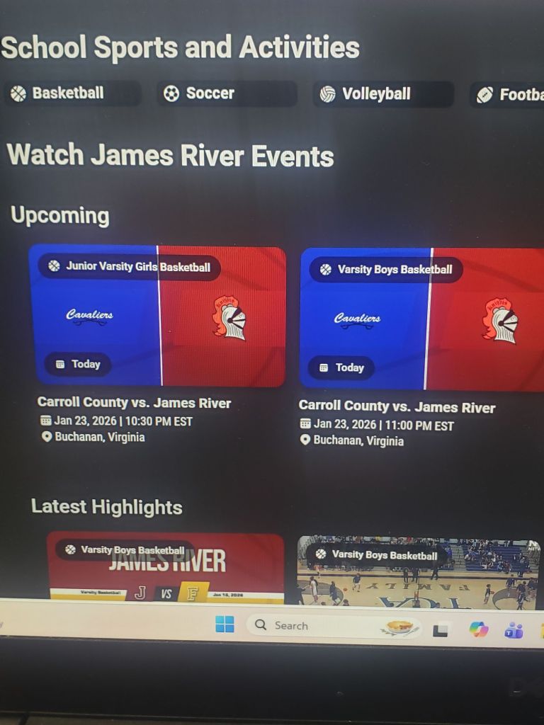James River High School π« sank a 3-pointer at the halftime buzzer but our Cavaliers still lead 27 – 26.