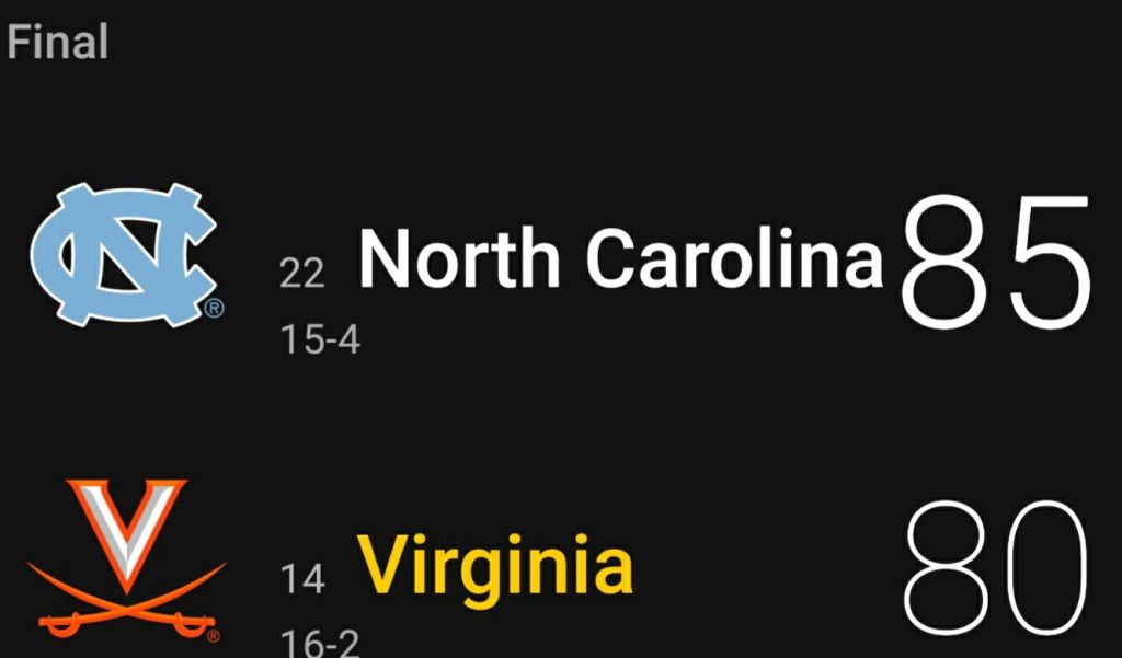 UNC and Virginia Men have a good one going on right now, just not on our TV…