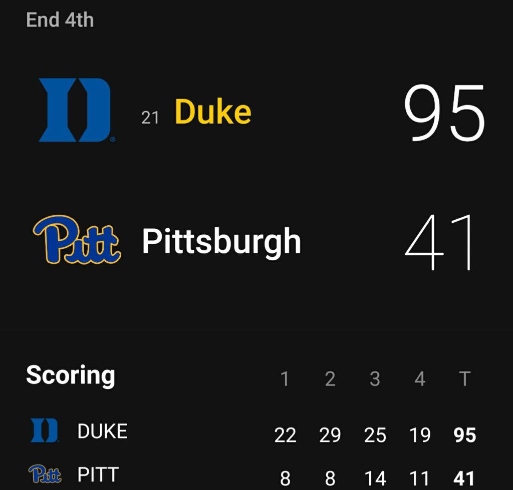 Duke 90 – 66 (0:46.1)(0:18.8) Timeout, why????? 90-69 (F)