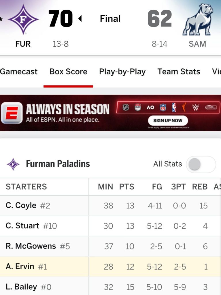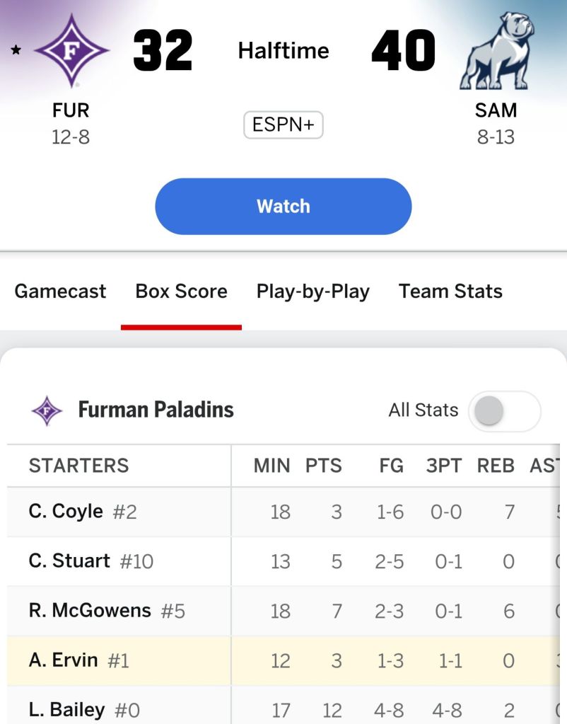 Alyssa Ervin and Furman University are down in Alabama for a showdown with Samford