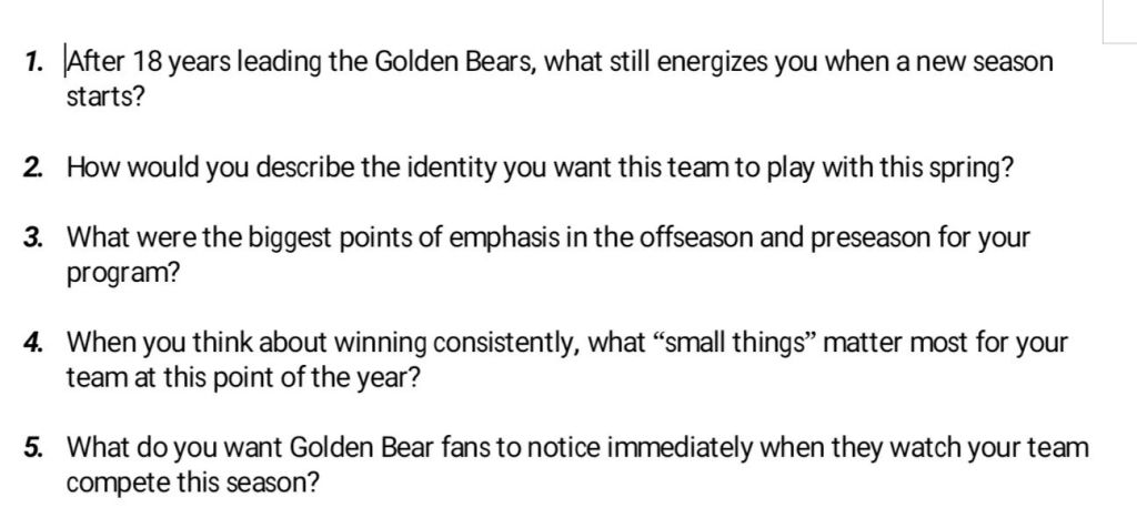 2). We will be lead by the depth of our pitching staff. We return several quality arms from last year’s team and have added some outstanding guys that are going to make an immediate impact. Offensively, we are replacing seven starters and will need to be as scrappy bunch that have to “do the little things well”.