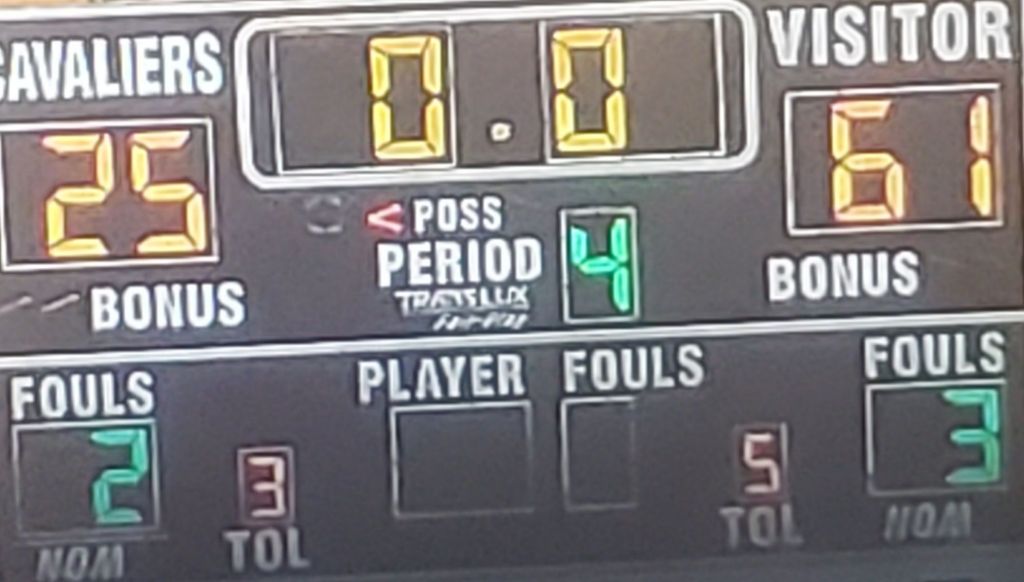 End of 3rd quarter score – Blue Demons 55-19 after CCHS scored three late baskets.