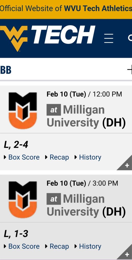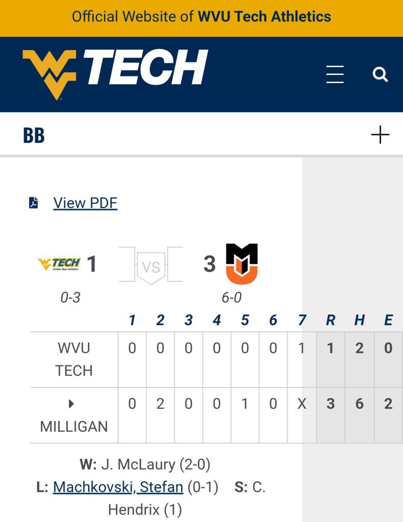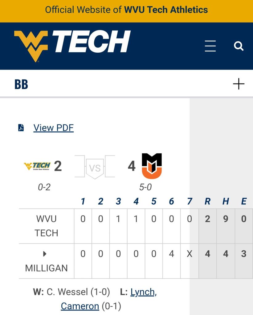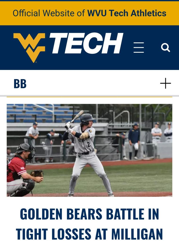 Golden Bears π» Baseball βΎοΈ competed from start to finish in both games but fall short, 4-2 and 3-1. Now its back to Beckley for some time in the classroom. Around the Valley in 60 Days West Virginia Tech University February 10, 2026 1 Minute Share this: Share on Facebook (Opens in new window) Facebook Share on X (Opens in new window) X Like Loading... Related Published by Around the Valley in 60 Days Trying to find Positive in a World π that needs more of it! View all posts by Around the Valley in 60 Days Published February 10, 2026