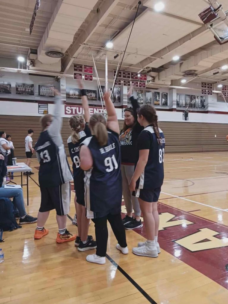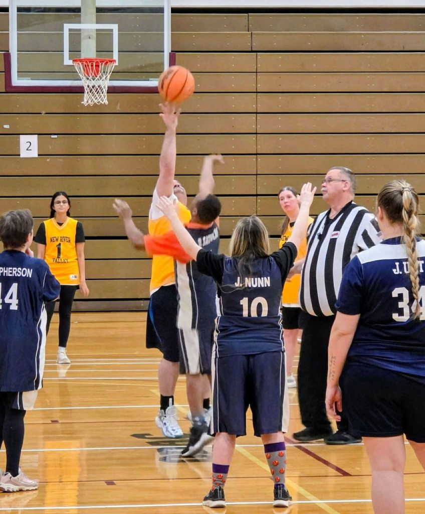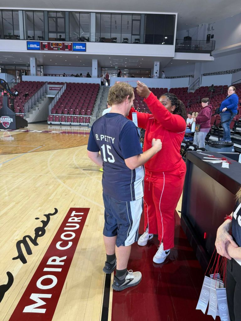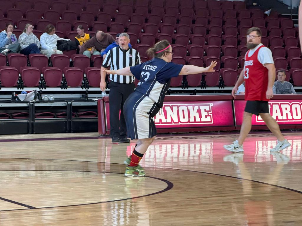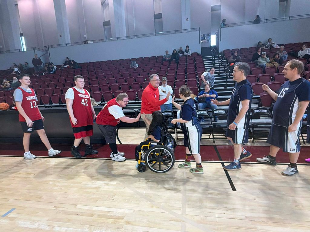 Sun Feb 8, as invited guests at the Area 8 Special Olympics Basketball Tournament at Roanoke College, Carroll County Special Olympics took 3 teams and played 6 games against opponents from Roanoke (Area 8), New River Valley (Area 9), and Marion (Area 10). The CCSO HotShots lost one (12-16) and won one (31-14, a scrimmage with teammates because the other team was a scratch), the CCSO SureShots lost two by slim margins (14-18 and 22-26) and the CCSO Cavaliers won two (17-14 and 36-24). Coach Vickey Ritchie reported that a large entourage of family members and caregivers accompanied the group and pitched in to help at every opportunity. βIβm fond of saying that we simply could not do all we do without all the helpers, and that was certainly true on Sundayβ said Coach Ritchie, βWe truly are ONE TEAM.β