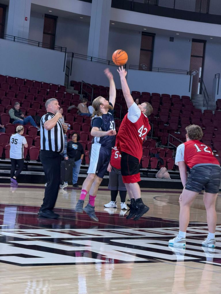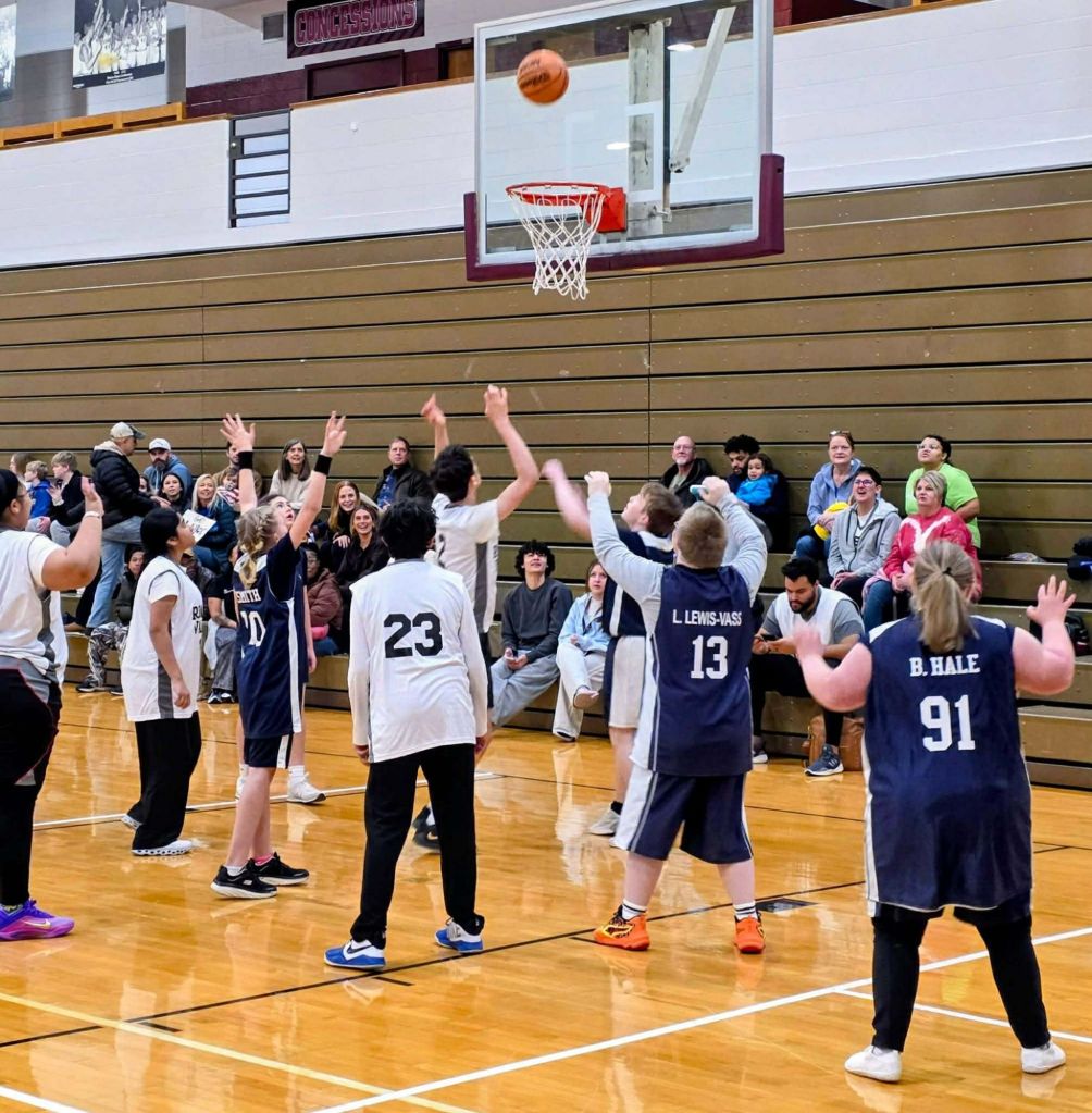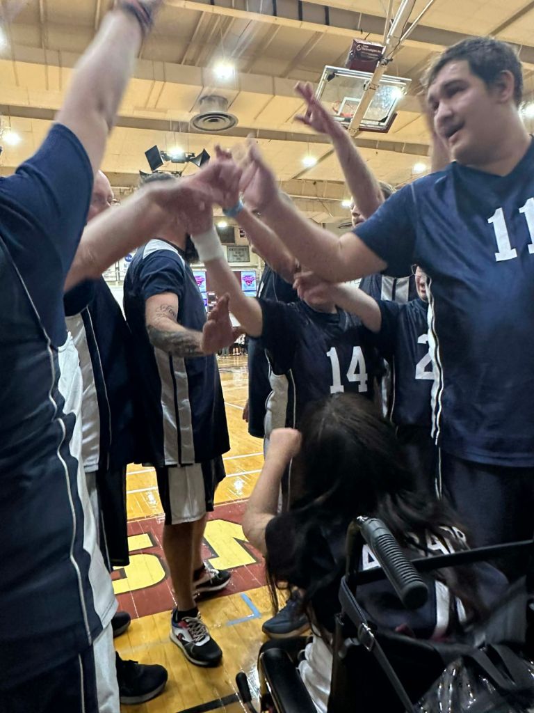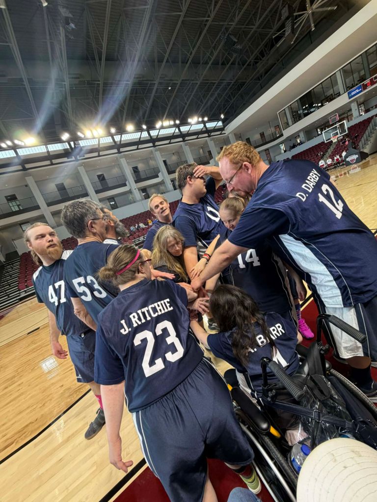 Sun Feb 8, as invited guests at the Area 8 Special Olympics Basketball Tournament at Roanoke College, Carroll County Special Olympics took 3 teams and played 6 games against opponents from Roanoke (Area 8), New River Valley (Area 9), and Marion (Area 10). The CCSO HotShots lost one (12-16) and won one (31-14, a scrimmage with teammates because the other team was a scratch), the CCSO SureShots lost two by slim margins (14-18 and 22-26) and the CCSO Cavaliers won two (17-14 and 36-24). Coach Vickey Ritchie reported that a large entourage of family members and caregivers accompanied the group and pitched in to help at every opportunity. βIβm fond of saying that we simply could not do all we do without all the helpers, and that was certainly true on Sundayβ said Coach Ritchie, βWe truly are ONE TEAM.β