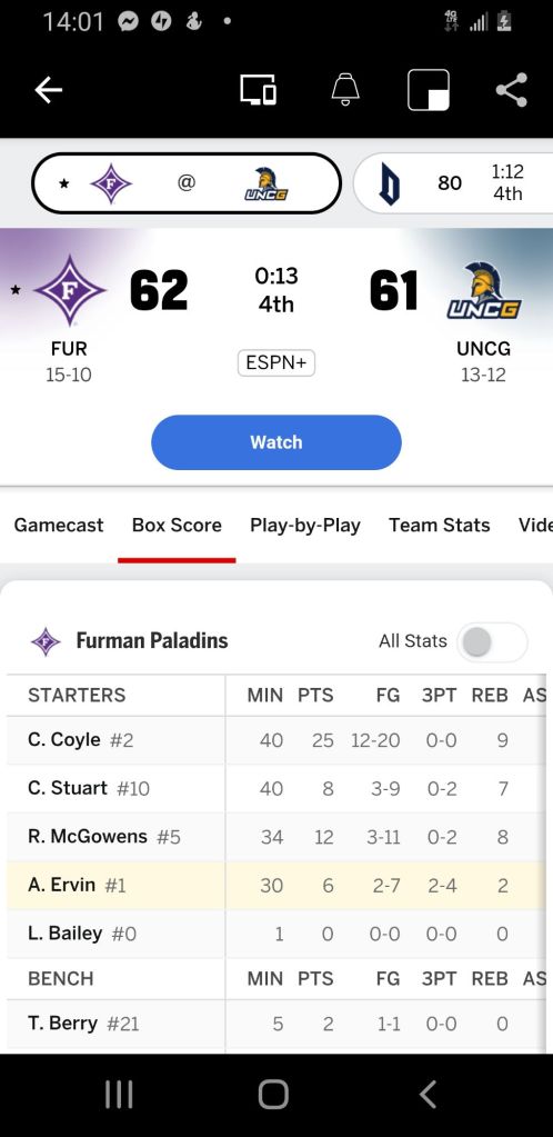 Furman University is at UNC – G and we have Bill Gallimore in the House π watching our Alyssa Ervin ! Around the Valley in 60 Days Carroll County High School, Saved by the Bell π February 14, 2026February 14, 2026 1 Minute Plenty more to follow on this one ! Only 6 points on the day but the second 3-pointer sealed a tremendous come from behind victory !!!! More 2 Follow Share this: Share on Facebook (Opens in new window) Facebook Share on X (Opens in new window) X Like Loading... Related Published by Around the Valley in 60 Days Trying to find Positive in a World π that needs more of it! View all posts by Around the Valley in 60 Days Published February 14, 2026February 14, 2026