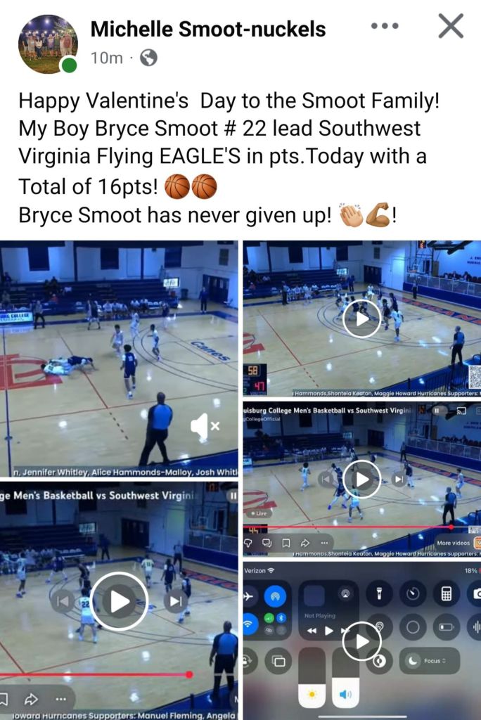 Our Smoot Brothers and Southwest VirginiaCommunity College Flying Eagles fought the good fight today but fell just short. Around the Valley in 60 Days Carroll County High School, Saved by the Bell π February 14, 2026February 14, 2026 1 Minute Season High in Points for Bryce = Proud Family πͺ Moment !!!! Share this: Share on Facebook (Opens in new window) Facebook Share on X (Opens in new window) X Like Loading... Related Published by Around the Valley in 60 Days Trying to find Positive in a World π that needs more of it! View all posts by Around the Valley in 60 Days Published February 14, 2026February 14, 2026