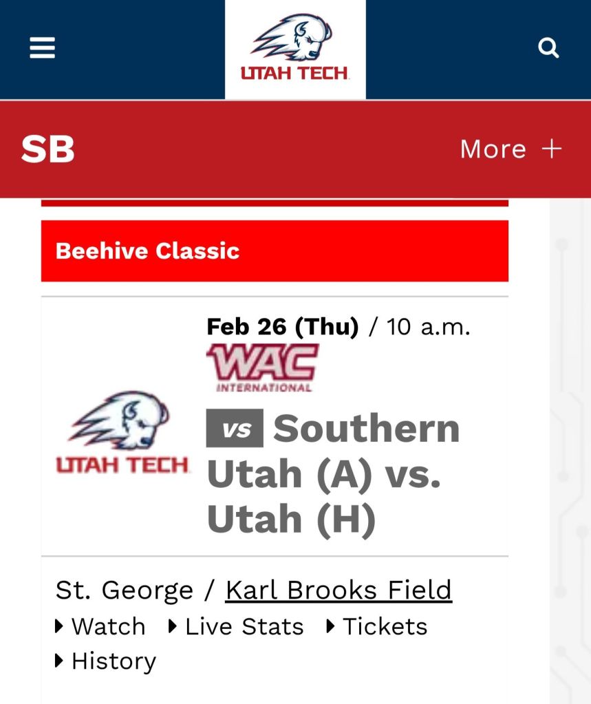 Utah Tech is hosting Day #1 of a four day Softball tournament called the Beehive Classic. It begins at 10am each day and will include a Triple Header of action π¬!