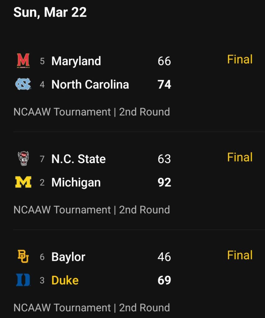 Clemson and Virginia Tech both made it but fell in the opening round.