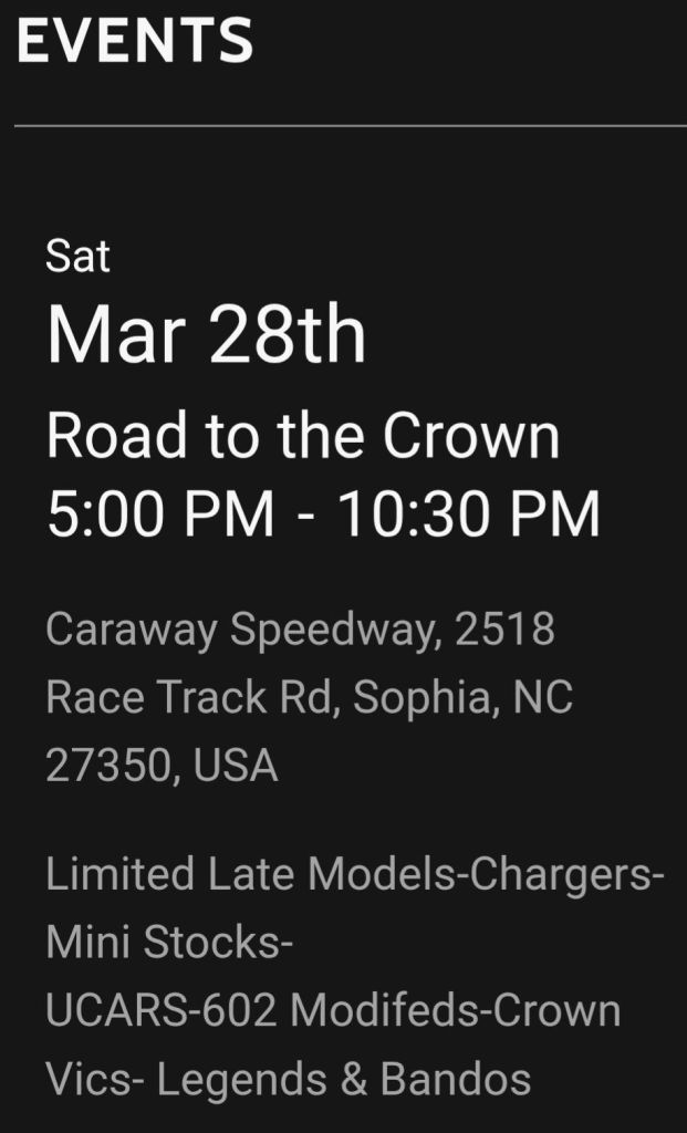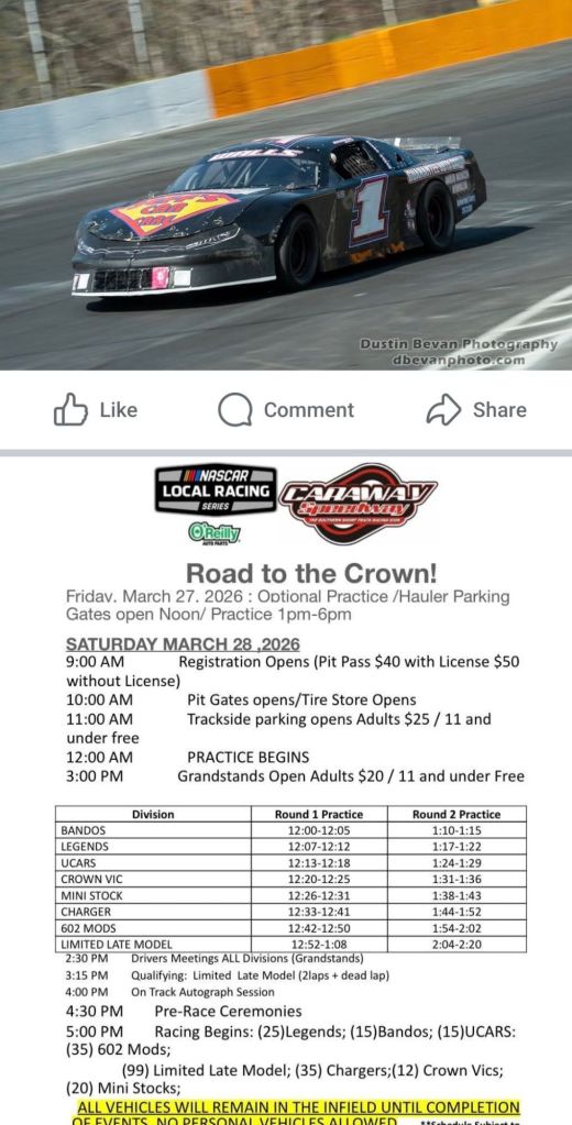 Dakota Walls Racing π is ready for round 3 at Caraway Speedway in Sophia, North Carolina later today ! Around the Valley in 60 Days Carroll County High School March 28, 2026 1 Minute Zoom, Zoom Share this: Share on Facebook (Opens in new window) Facebook Share on X (Opens in new window) X Like Loading... Related Published by Around the Valley in 60 Days Trying to find Positive in a World π that needs more of it! View all posts by Around the Valley in 60 Days Published March 28, 2026