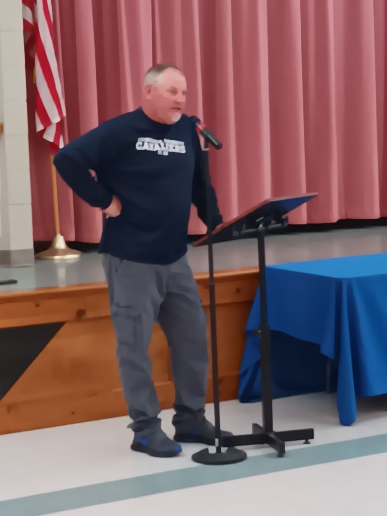 3:34 – The meal has been finished up, and Israel Easter is now filling in for planned speaker Jay Holderfield. Mr Easter is a natural speaker with plenty of time spent in the pulpit.