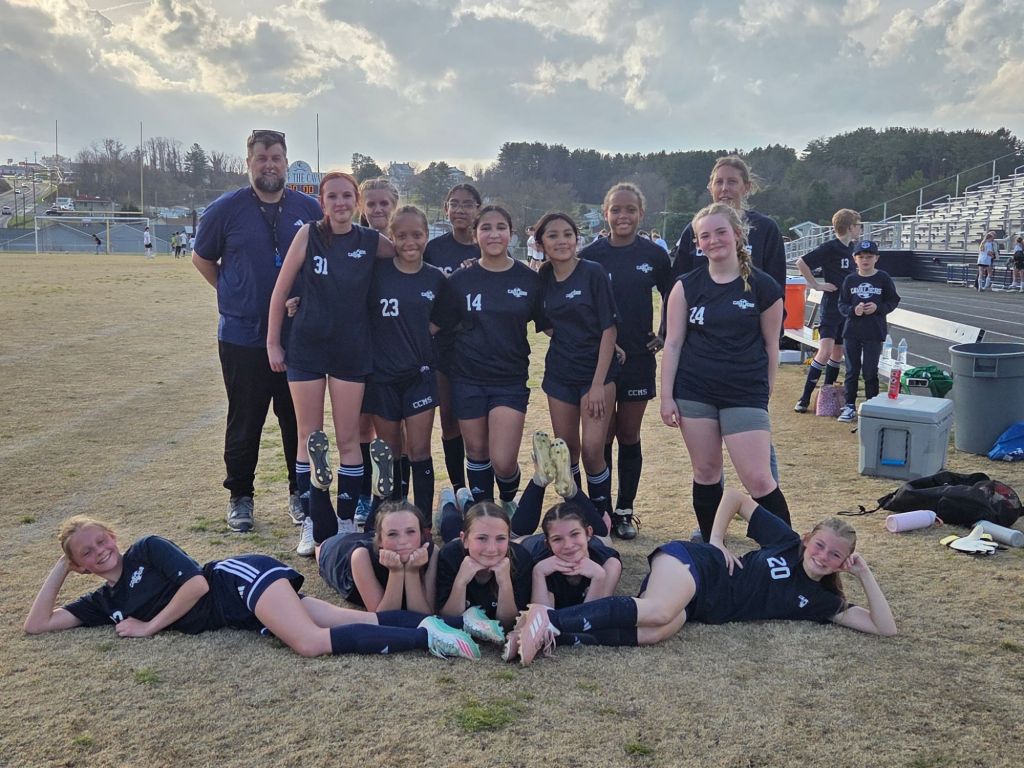 Middle school girls had their first ever game in school history, and here is the team picture after it was over.Β 2-2 tie against Patrick Co.