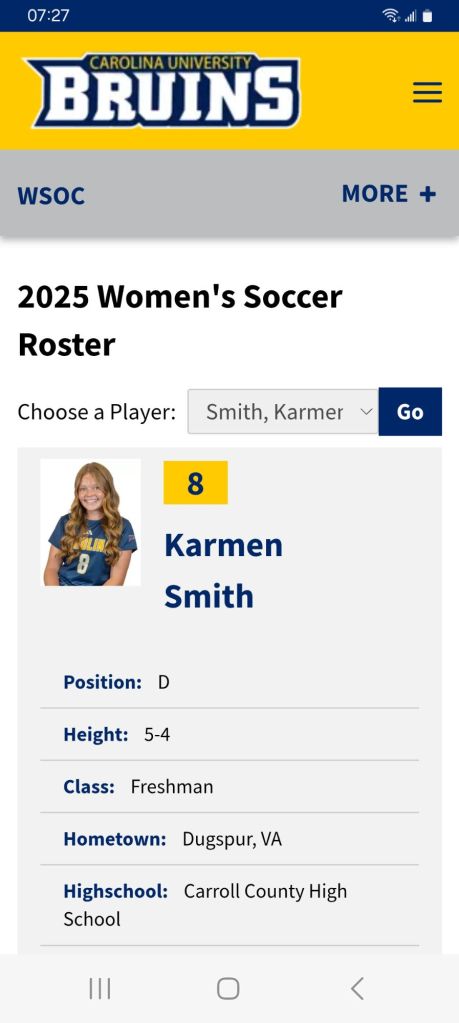Carolina University is a private Christian βοΈ school that was founded back in 1945 and is located close enough to home for family and friends to drive down US-52 to take in a match. The fact that college soccer β½οΈ is played in the fall where VHSL soccer takes place in the spring is what allows Smith to work with the current Lady Cavaliers.