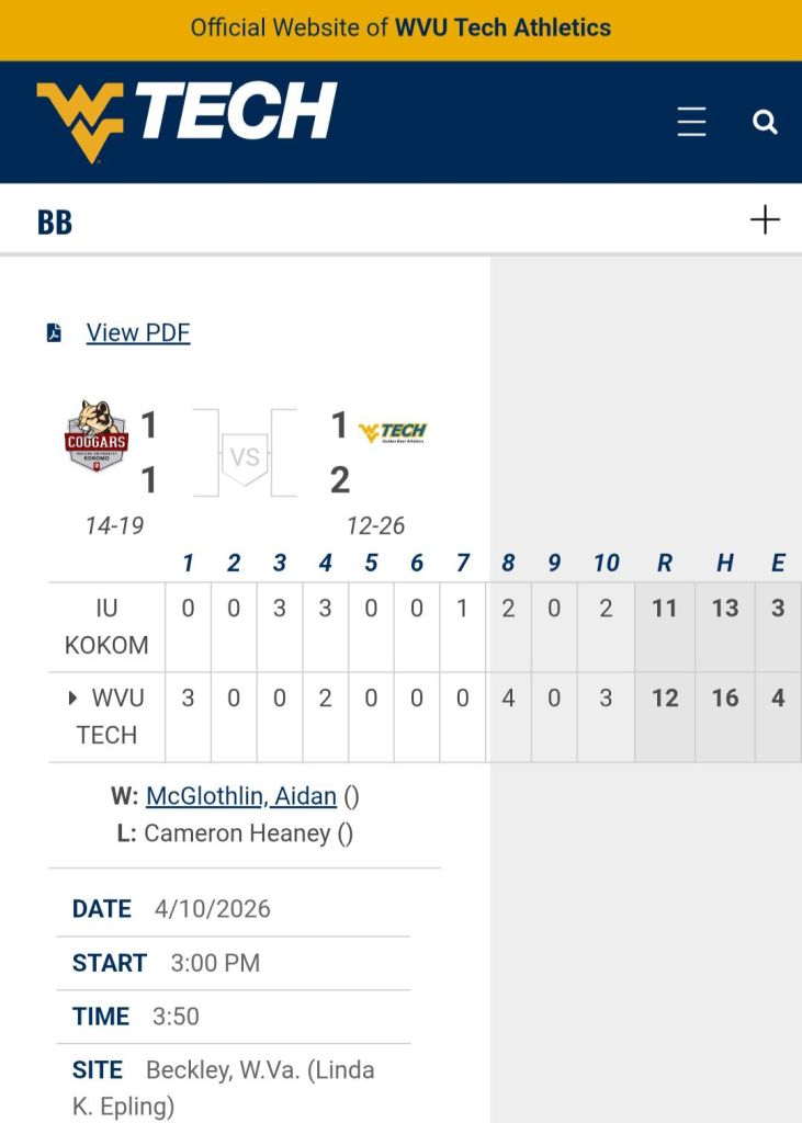 Beckley, West Virginia – West Virginia Tech University and Indiana University at Kokomo played a baseball game for the ages on Friday afternoon at Linda K Epling Stadium, with the Golden Bears rallying for the third time in a 12-11 Ruver States Conference victory.